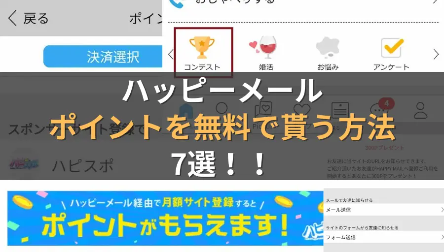 ハッピーメールのポイント消費つらい・・・ 無料でポイントを貰えたらいいのに ハッピーメールのポイントは出会いの可能性を広げる重要な資源です。 しかし、常に課金するのは財布に優しくありません。 そこで本 ...