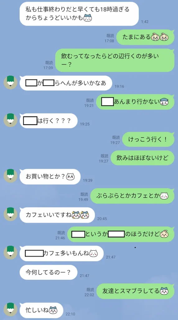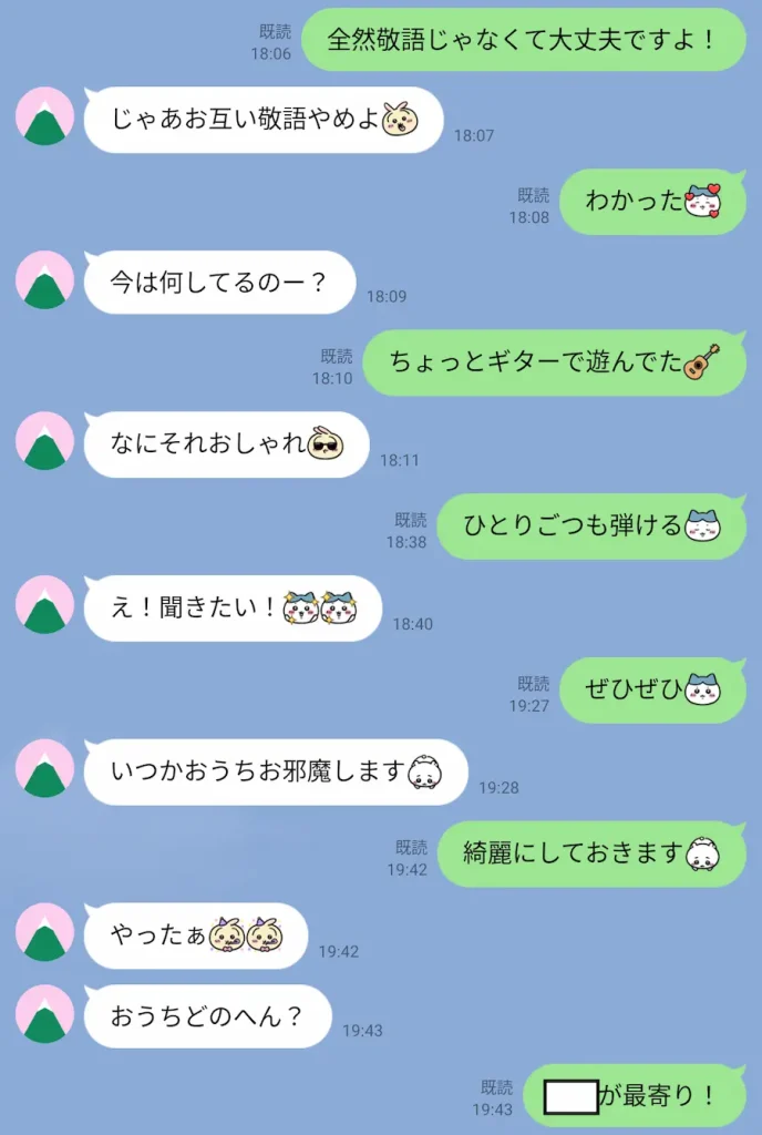 年上の方だったので敬語無くても大丈夫っての伝えると、こちらも敬語じゃなくて良いとのことでここからため口に。