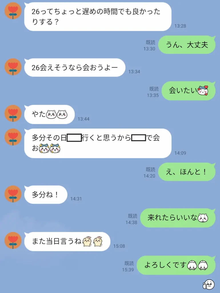 しかも自分の最寄りに用事があるみたいで、最寄りで会えそう。