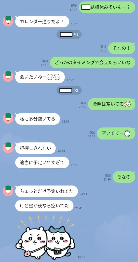 けど空いてる日共通っぽいので会えそうですね。