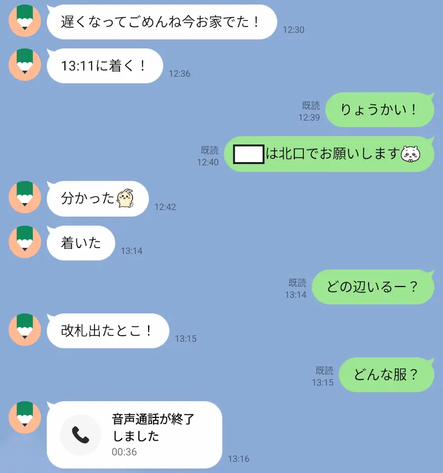 どうやら到着したみたいで改札出たとこと言えども人はたくさんなので全然どの人かわからなかったです。