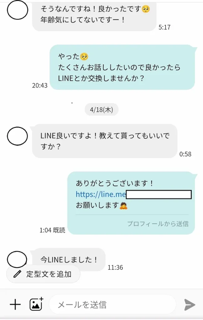 はい、3通目でLINE交換打診して、4通目でURL送ってLINE移行しました。