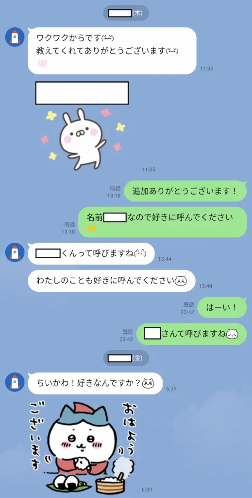 ワクワクから移行したことと、名前の呼び方お互い決めるというお決まりの会話の流れです。