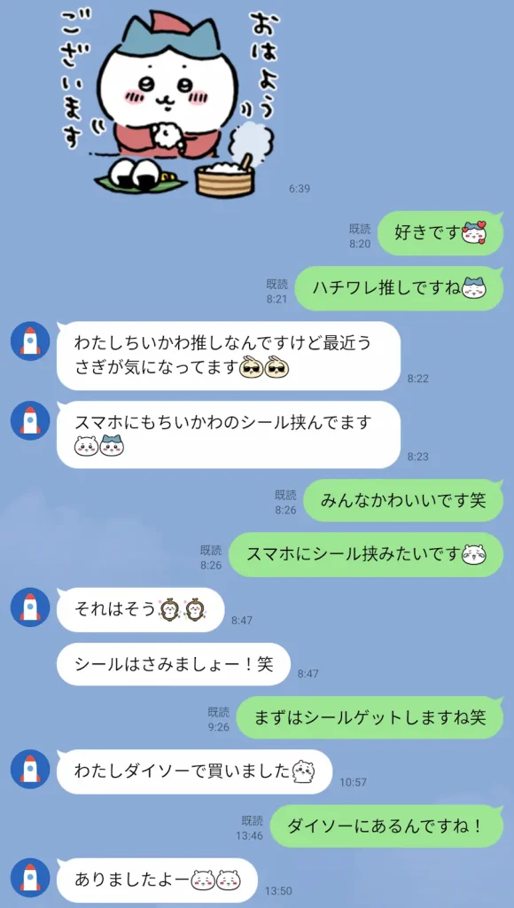 こんな感じで、ちいかわトークで和むことに成功しましたね。