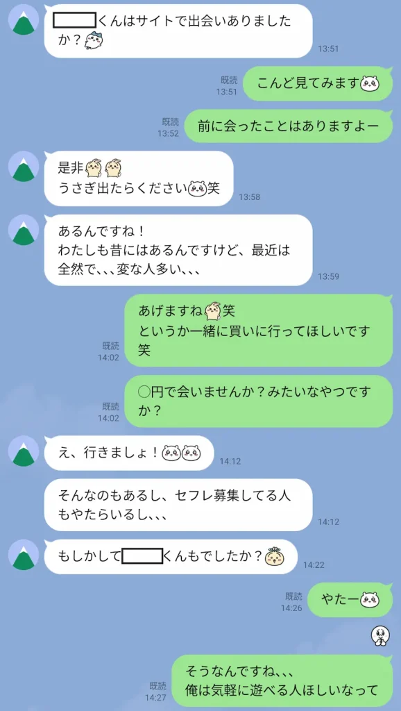 文言から見るにセフレ募集している人は変な人認定しているな。