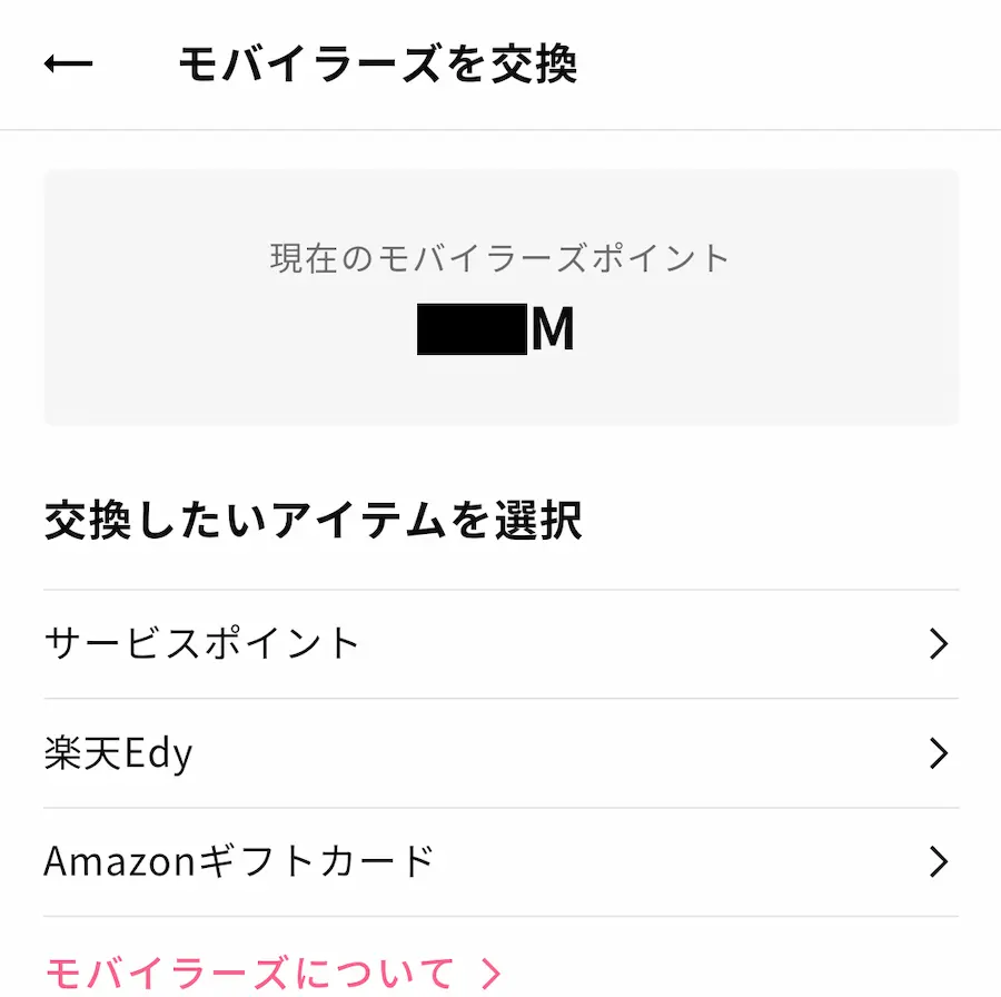 で、貯めたモバイラーズは以下のアイテムに交換できます。
